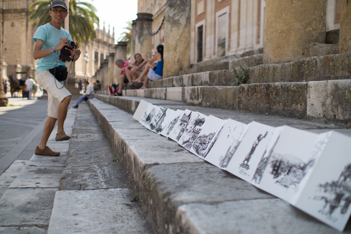 In July 2013, several of my urban sketcher friends from Singapore attended the Fourth international Urban Sketchers Symposium held at Barcelona. This is a yearly event where urban sketchers from all over the world gather in one city to attend workshops and sketch the city together. Some of them extended their stay to travel to other areas to do more sketching. I managed to touch base with 2 of them for this feature: Parka (who runs the famous Parka Blogs), and Tony (whom we have affectionately dubbed the mascot of Urban Sketchers Singapore).